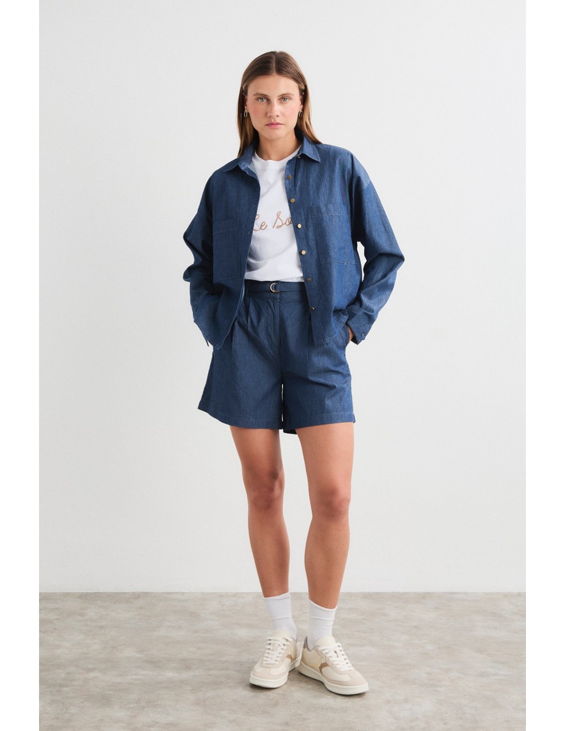 Camisa con cuello solapa y botonadura frontal, de manga larga con puños abiertos y botón en la parte posterior. Presenta dos bolsillos frontales y canesú en la espalda. Combínala con los pantalones o los shorts Banten para un total look sofisticado, ideal para los días de ciudad.
