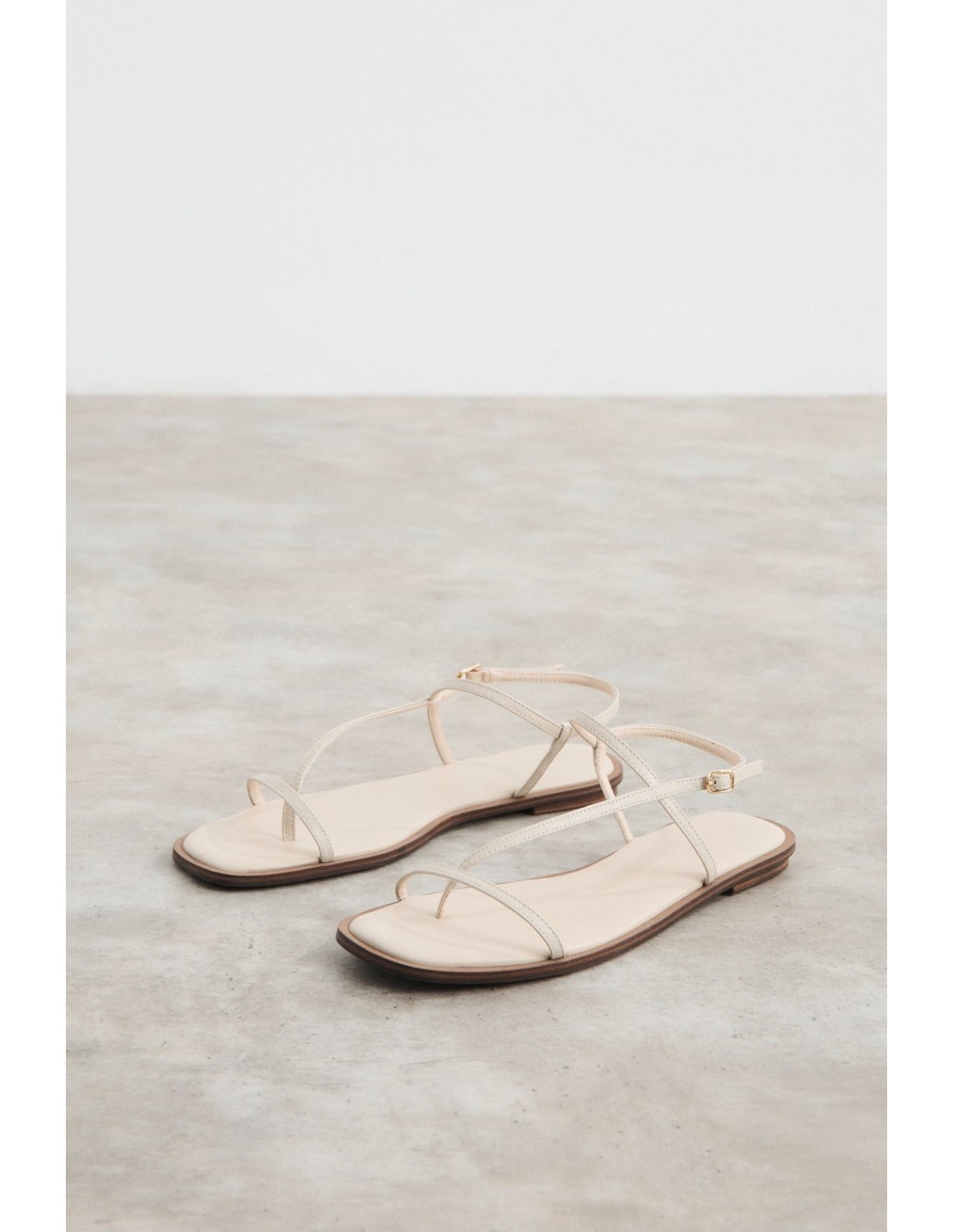 Sandale en cuir avec fines lanières de cuir et boucle métallique dorée. Logo Mus&Bombon gravé sur la semelle intérieure.