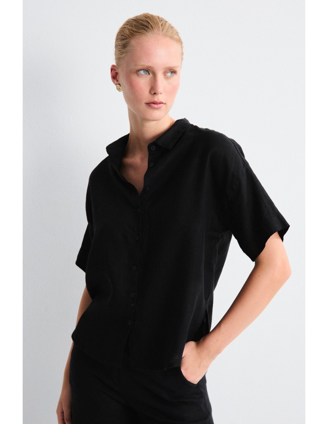 Linen shirt with shirt collar, short sleeves and front button fastening, and a relaxed silhouette. Get your total look by pairing it with Bobby trousers.