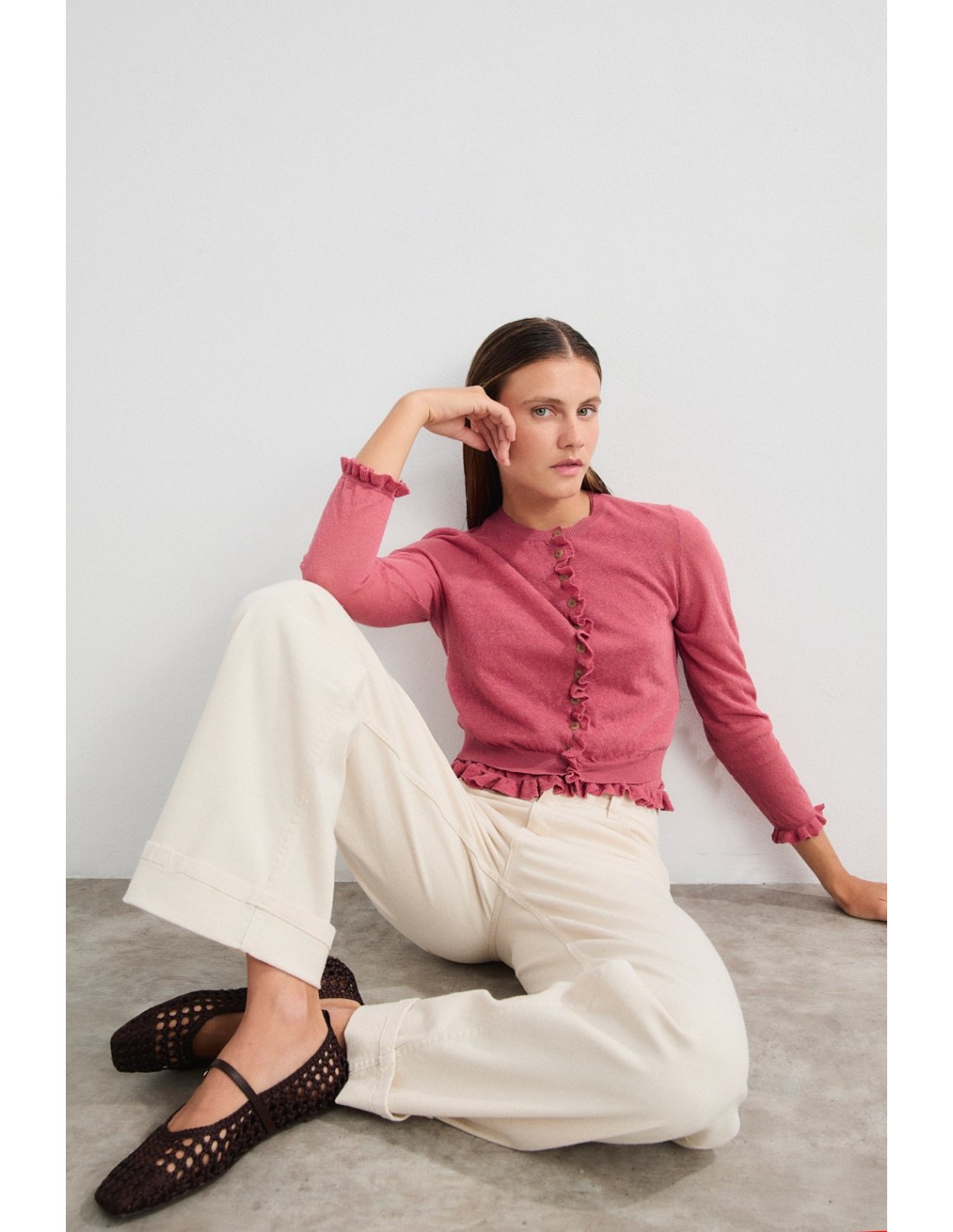 Openwork ballerina with a thin leather strap and golden metal buckle. Mus&Bombon logo engraved on the heel insole.