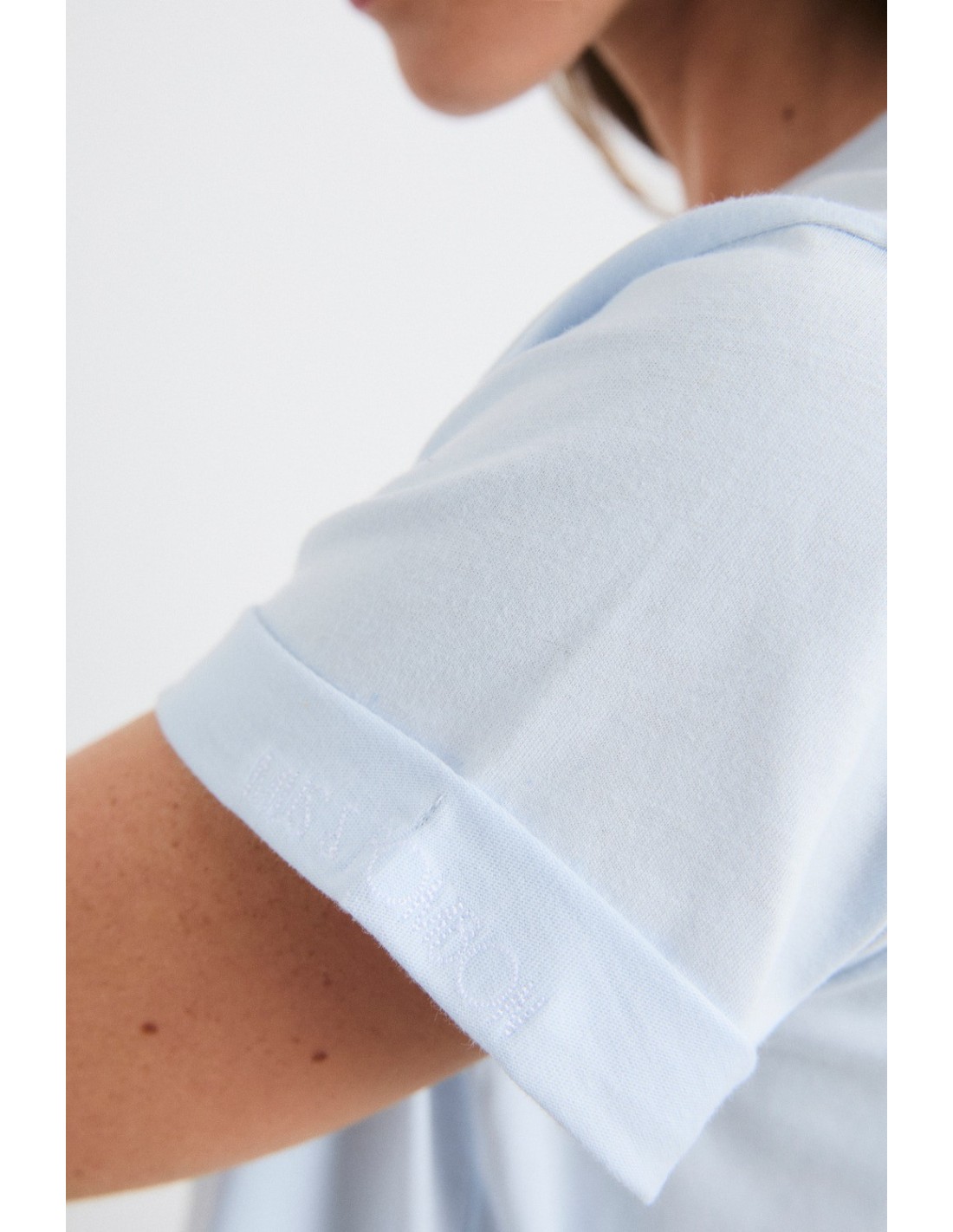 Musbom is aT-shirt with a crew neck, double turn-up sleeve cuffs and embroidered print on the left sleeve. The Mus&Bombon wardrobe staple that must be in your wardrobe.
