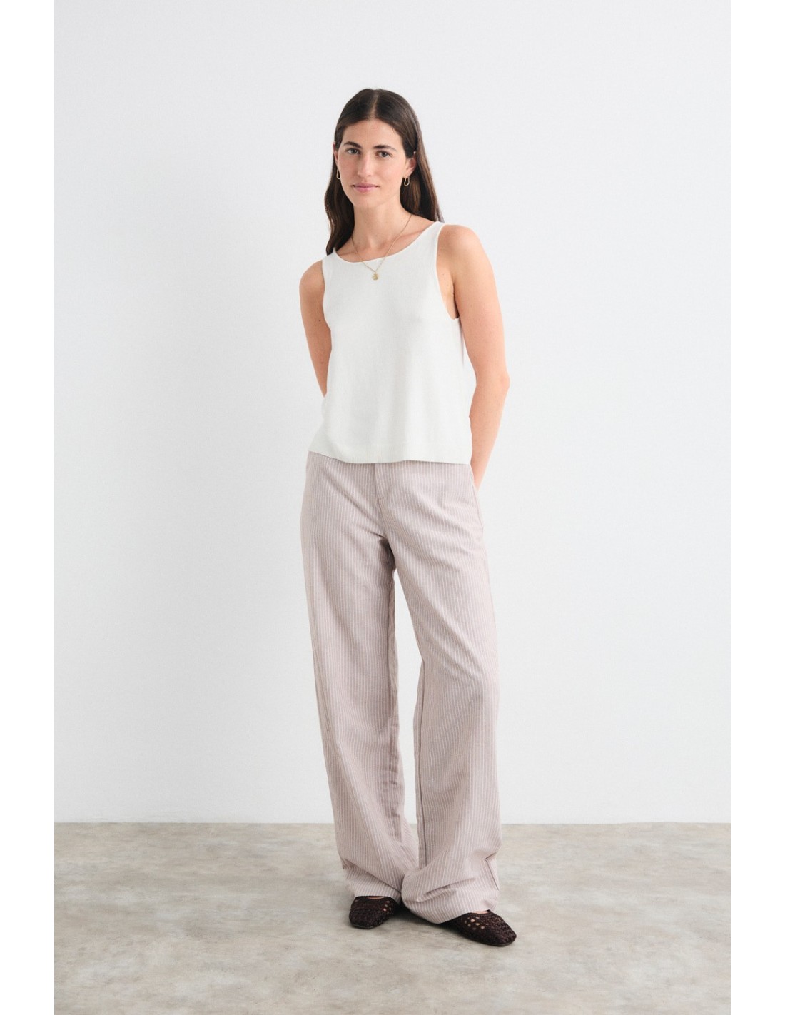 Multi-position knitted top, which allows you to wear the boat neckline or the V-neckline on the front. It belongs to the soft and versatile Yakira family, along with the cardigan and jumper in the same yarn.