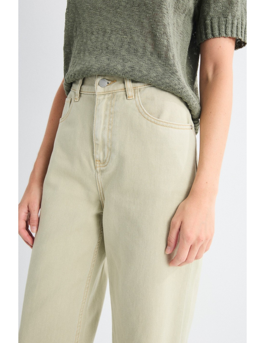 Long twill trousers with metallic button and straight cut. Available in a beautiful colour palette, ideal for welcoming Spring.